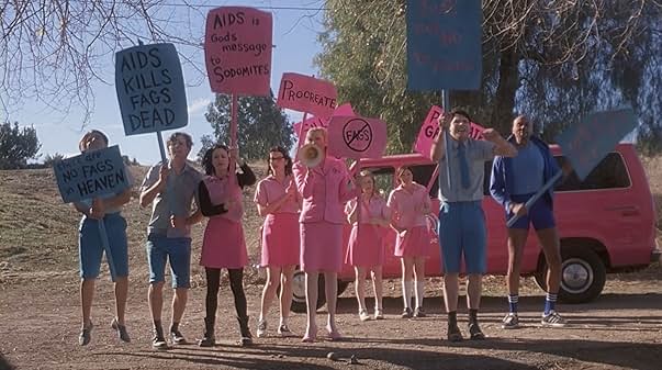 Bo Welch designed the set with the themes of gender and sexuality in mind, which is why semiotics are so prominent throughout the film. The over-the-top use of pink and blue, principally in the conversion camp, encapsulates the absurdity and over-the-top dramatics of how much Mary is willing to push this diluted version of the gender binary onto the queer people attending. Semiotically, But I’m a Cheerleader enhances the entanglement of gender and sexuality. Phallic imagaery is prominent during the army scene with trees reflecting male body parts and cut-outs of soldiers visually resembling male sexual acts. Male sexuality is commonly based in sex whereas sex, in the context of the nineties, was a very taboo topic for women which is why this is not seen subliminally with the women. The Hays Code banned ‘sexual perversion’ in movies under the notion that movies containing this would not get made. The lack of female sexuality in But I’m a Cheerleader may fall under the censorship of lesbianism using the male gaze, a more consumable way to view lesbians. Like most issues of homosexuality, this perception is dangerous, as it creates a dishonest image of lesbians. When lesbians disengage themselves from the male gaze (Mulvey, 1975) and don’t fit into this hypersexual, male fantasy imagery, it leads to violence against lesbians, therefore violence against women. This concept of gender and sexuality could also relate back to the sexist and usually sexual premise of ‘boys will be boys’, whereas women can’t hide under the banner of their gender to dismiss behaviour.